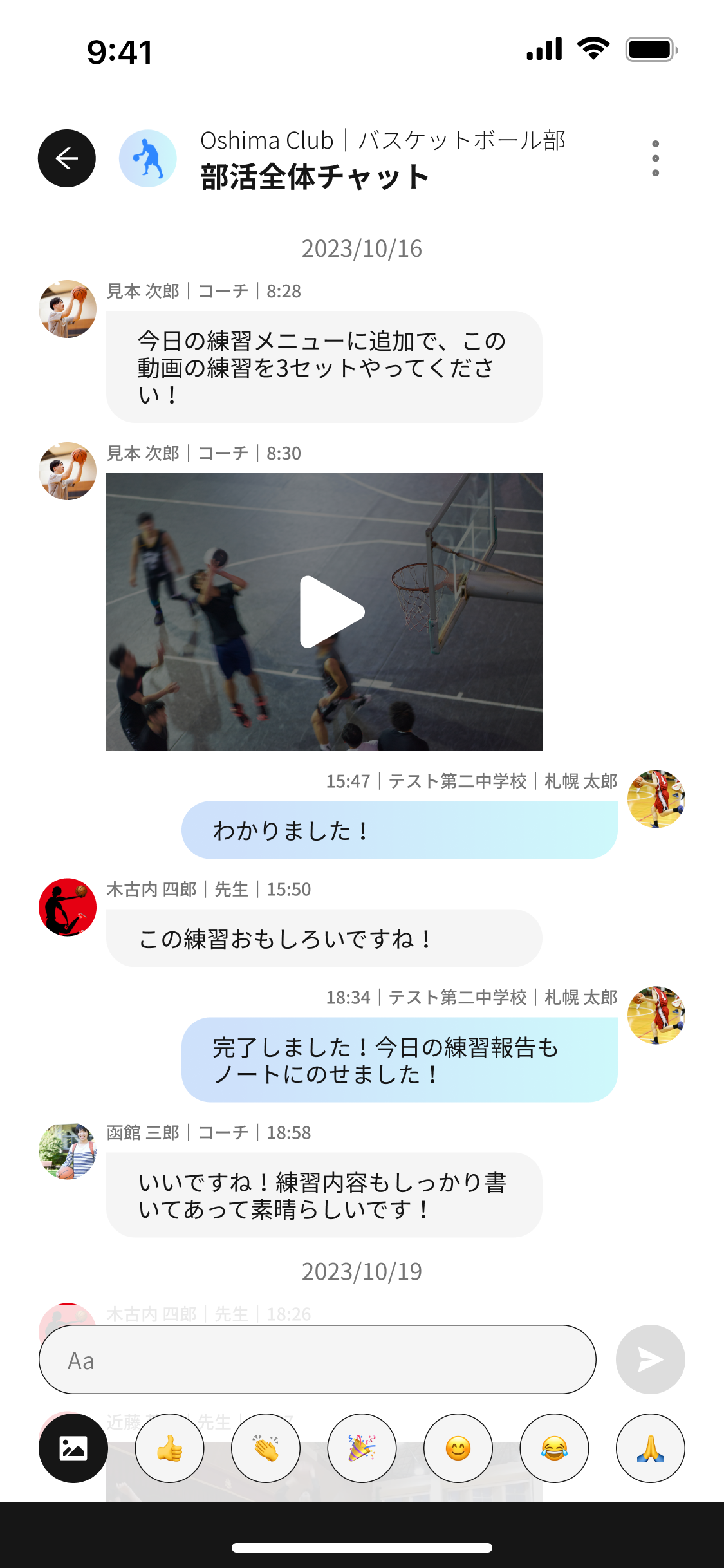 同じ部活のメンバーなどと、リアルタイムでやり取りできます。