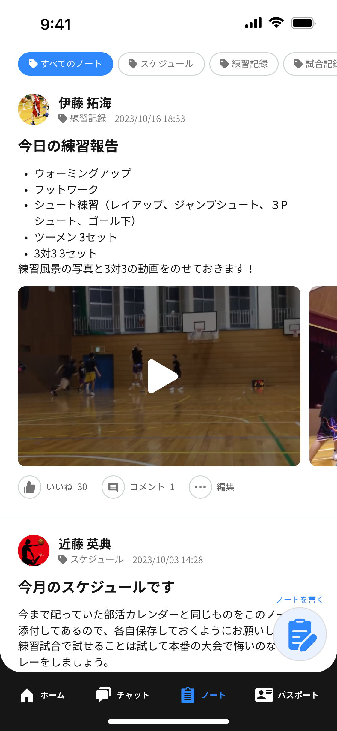 情報をまとめて投稿することができるノート機能です。