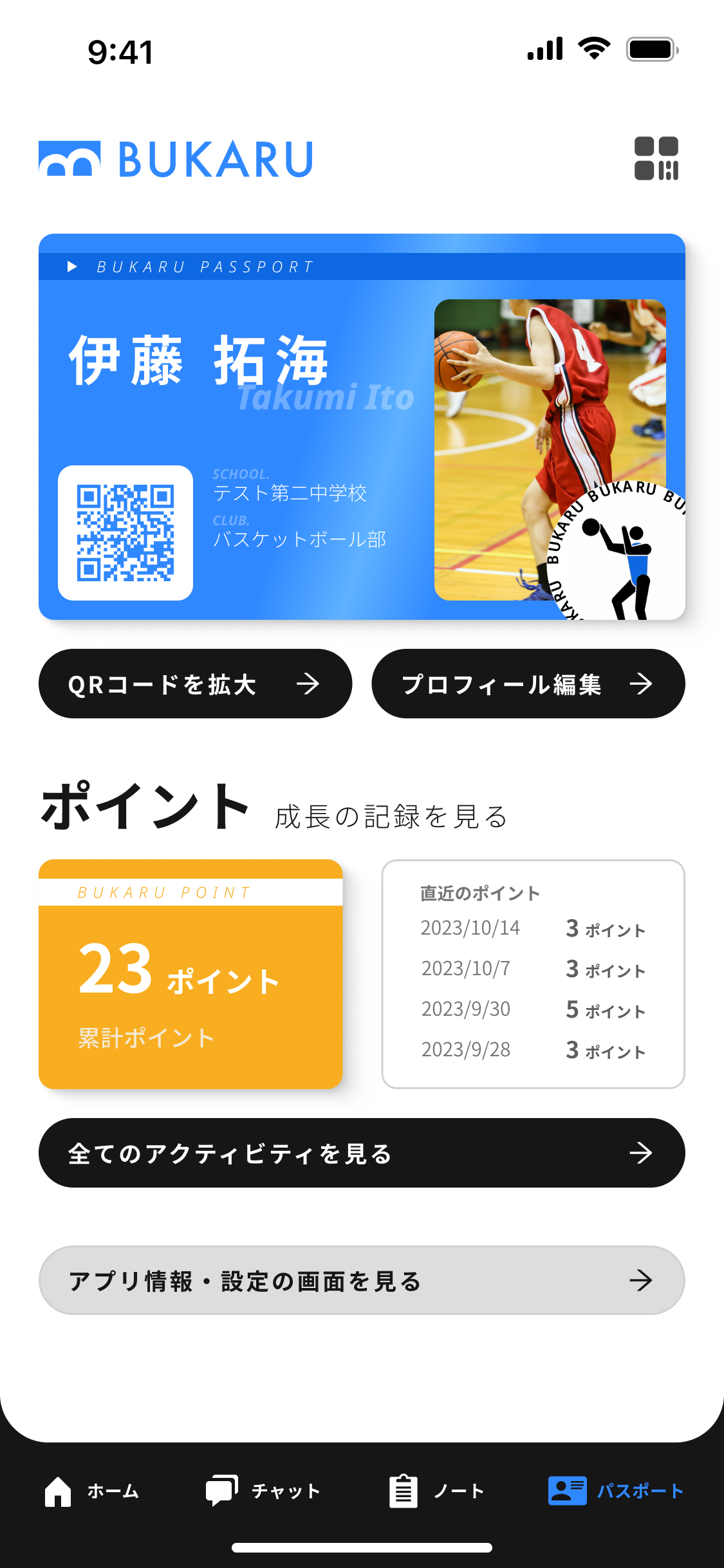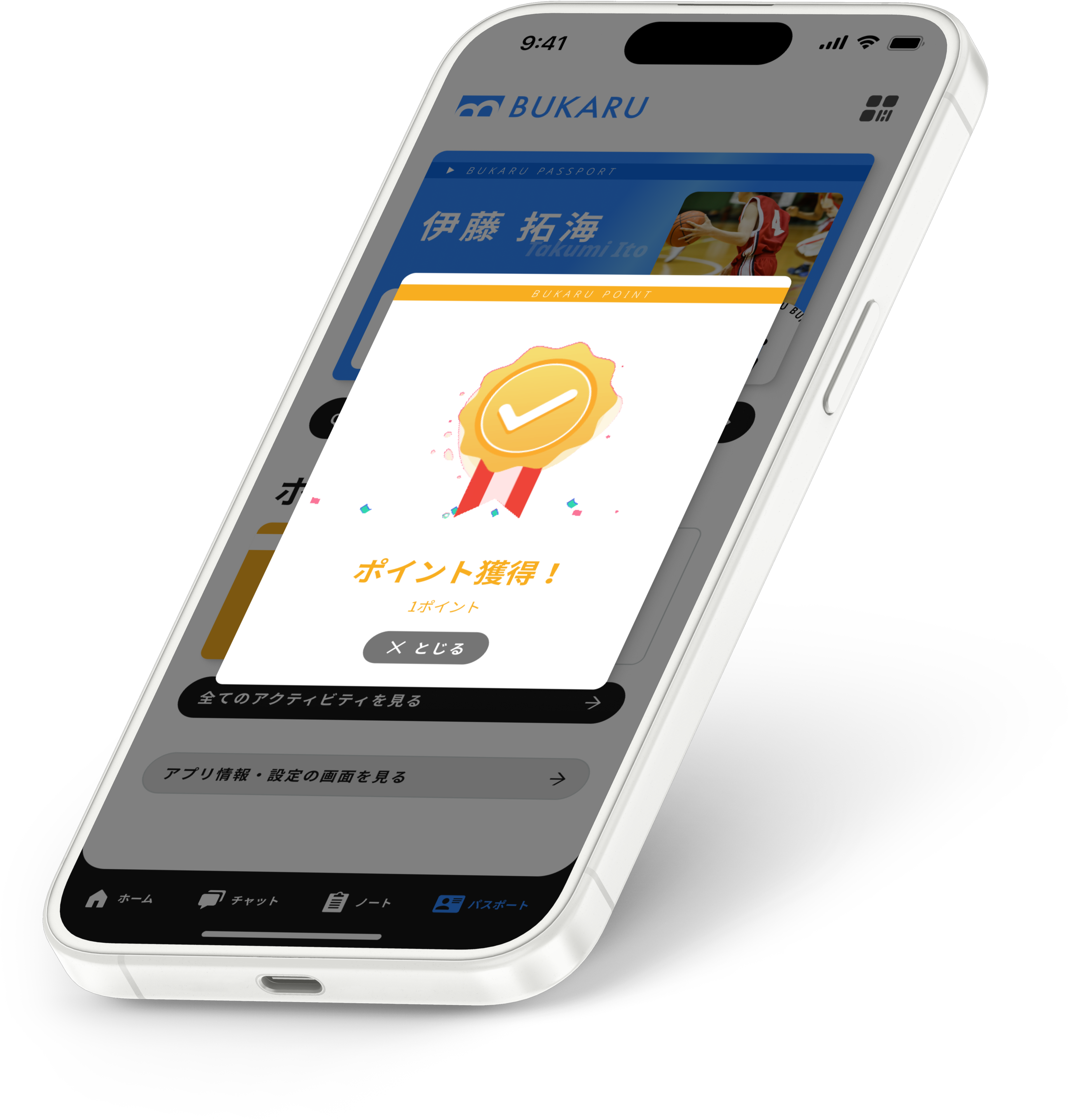 アプリ内のパスポート機能では、部活のログを収集することができます。